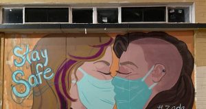 Gulp! Artists Attacked While Painting Mural of Masked Women Kissing